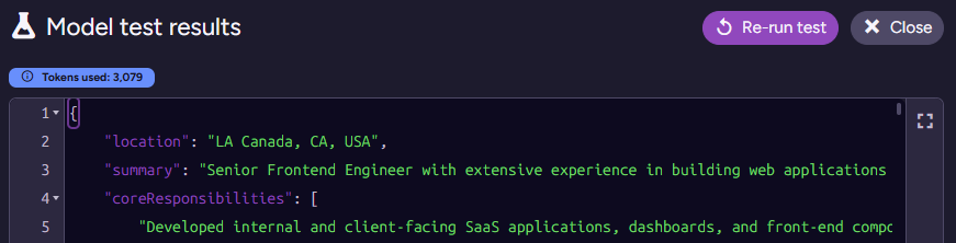 We now have the resume contents in a structured format, but we need to evaluate the candidate’s suitability for all the positions they applied for. We are going to do that using the model again, with a new Gen AI task.