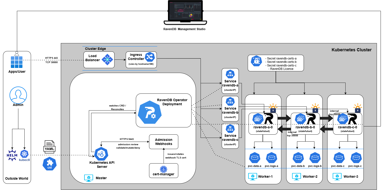 While Kubernetes is an excellent platform for stateless services, we strongly recommend deploying RavenDB directly on dedicated Virtual Machines. This provides a cleaner operational surface, simpler maintenance procedures, and more direct control over the underlying resources—all critical factors for a stateful, high-performance database cluster.